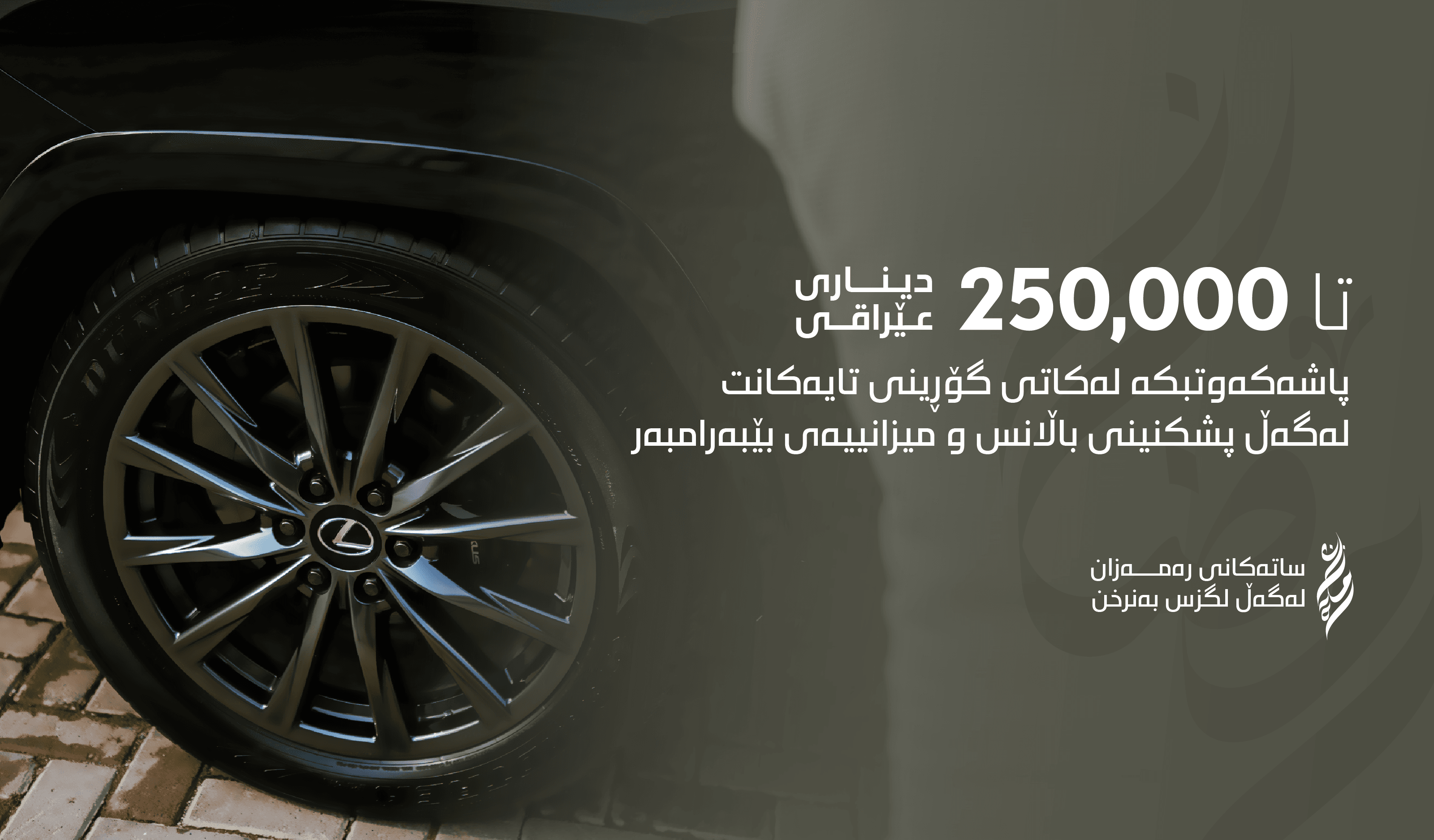 پاشەکەوتی تا 250,000 دینار لەگەڵ گۆڕینی تایەکانت